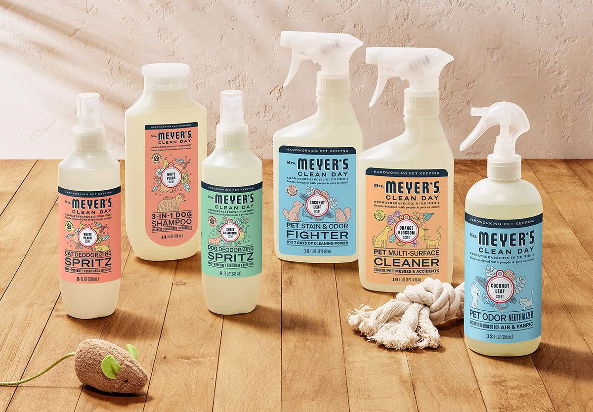 Mrs. Meyer’s Clean Day, now for pets. From hardworking cleaning essentials to veterinarian tested grooming products, it’s time to tame those pet stinks and messes.